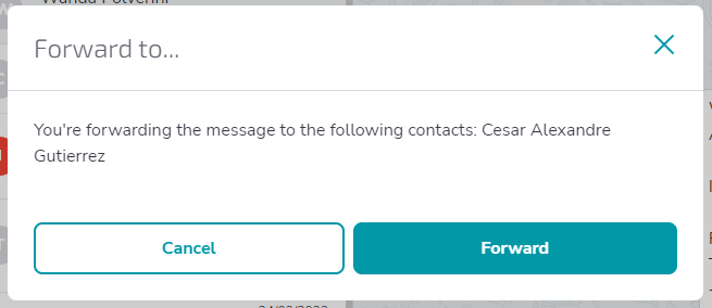 Within the conversation, each file and media can be re-sent to another contact as long as they are active prospects, in other words, the conversation must be within a session period.