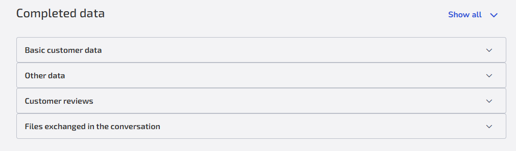 Finally, in Data filled in, it is possible to see all the information provided by the user during the conversation, such as their basic data or the rating they gave to the service.