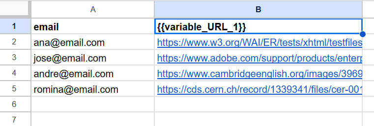 - Contain email addresses, obligatorily, in the first column - always in column A of the spreadsheet;
