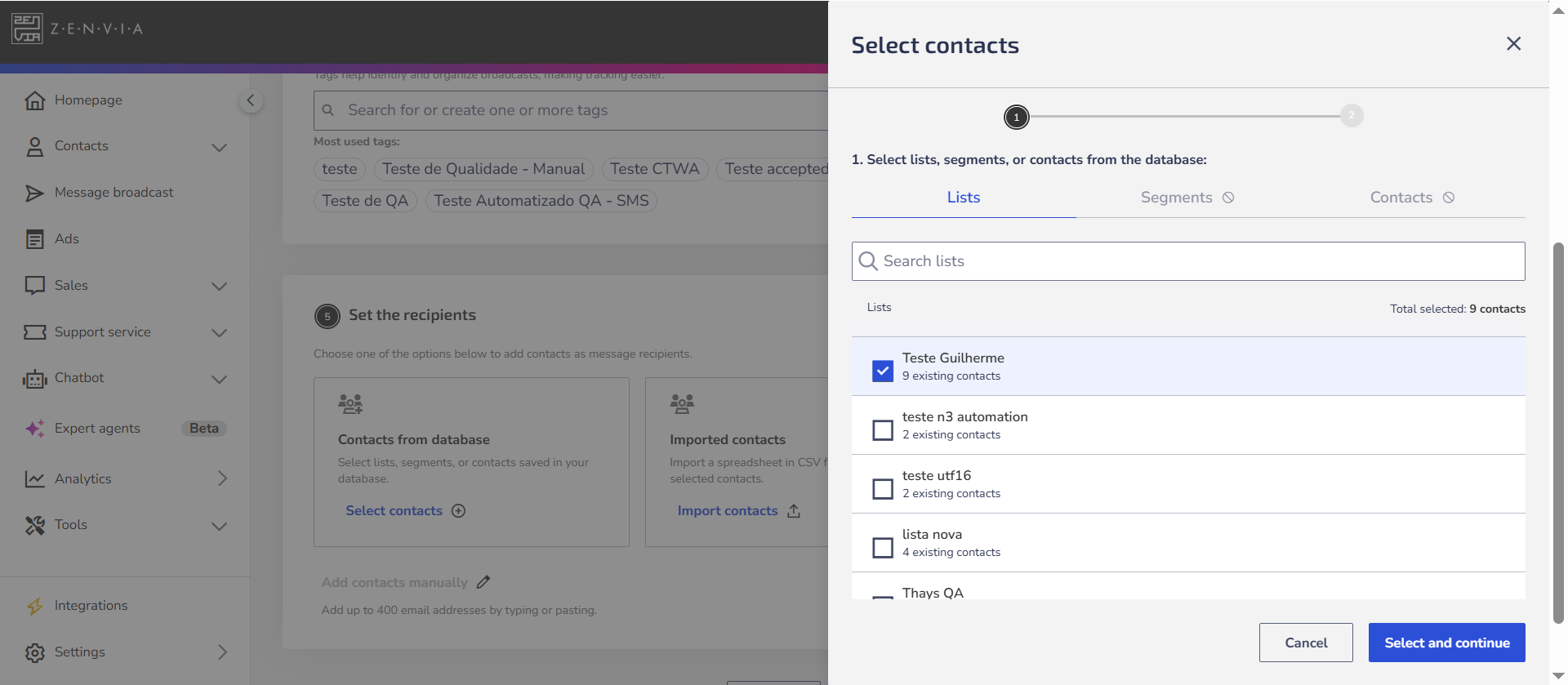 2. Select the contact list(s), specific contacts, or segmentation rules.