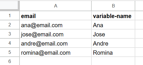• Contain email addresses, obligatorily, in the first column - always in column A of the spreadsheet;