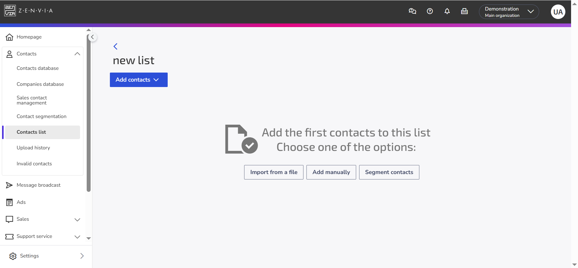 Contact lists allow you to organize and segment contacts efficiently, making it easier to send targeted messages and personalized campaigns. Below, learn how to create, manage, and use lists in Zenvia Customer Cloud.
