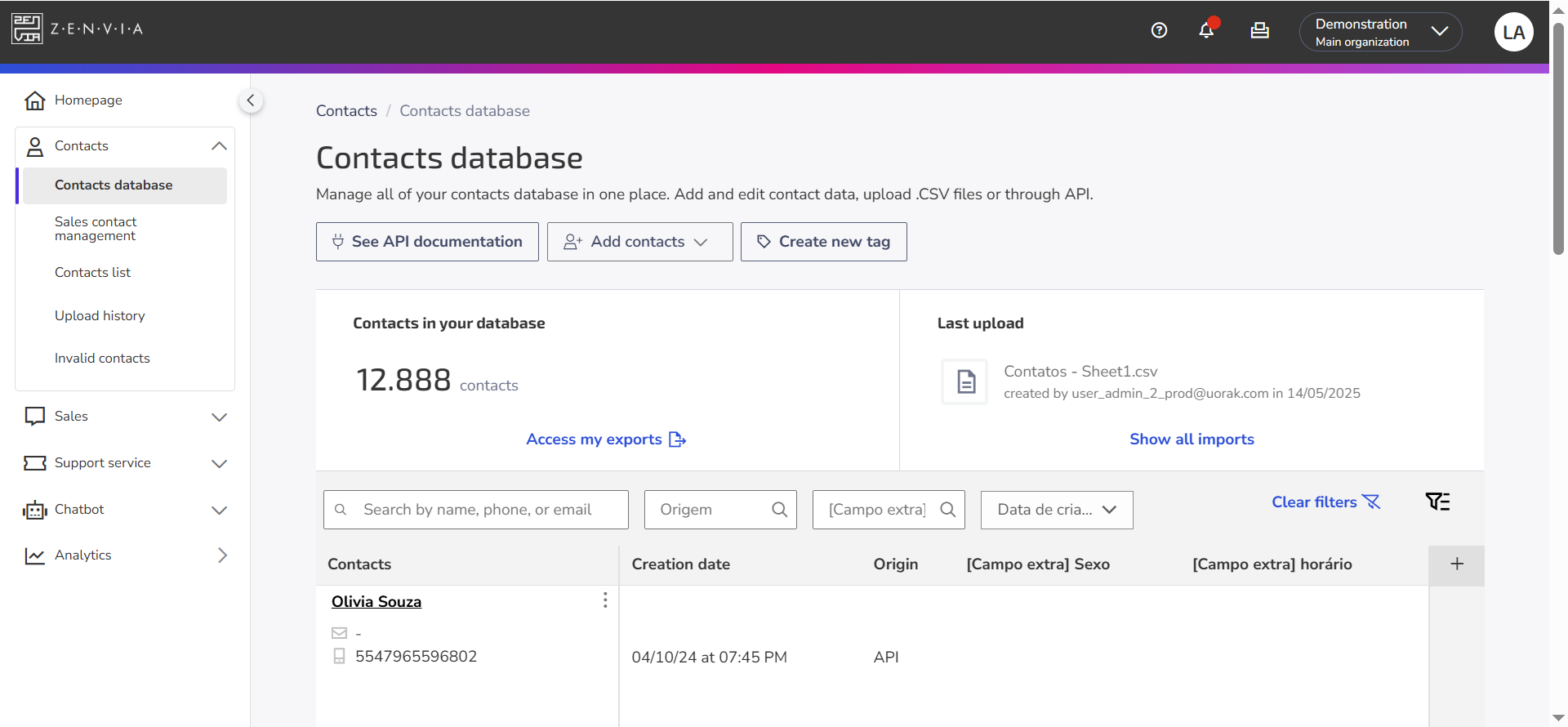 AdminThis profile has full access to Zenvia Customer Cloud, including all features, reports, and advanced organization settings.