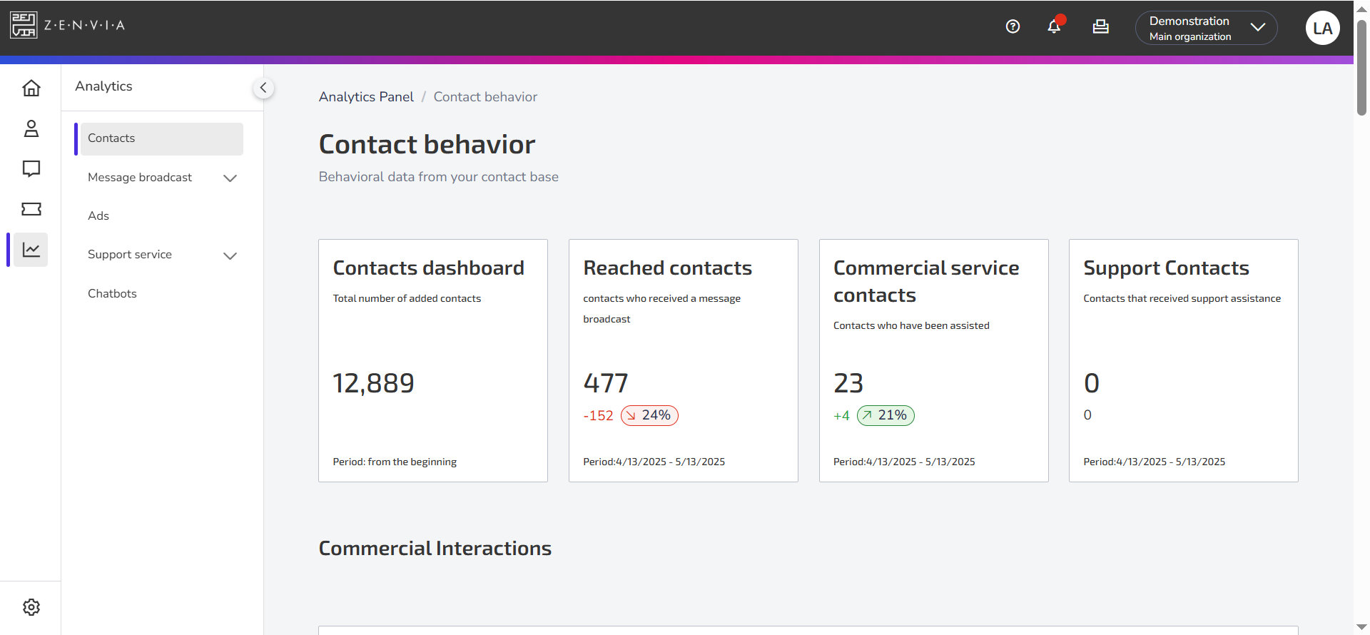 AdminThis profile has full access to Zenvia Customer Cloud, including all features, reports, and advanced organization settings.