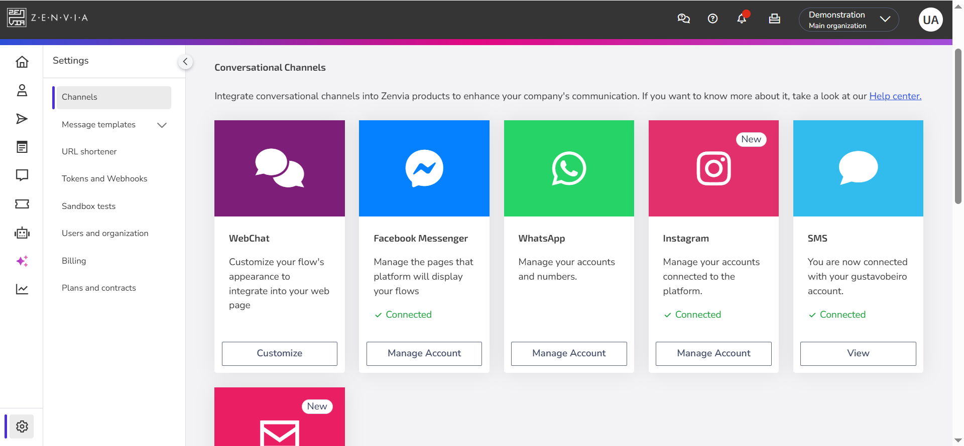 WhatsApp is already part of the Zenvia Customer Cloud channel package. To start using it, you must meet Meta's prerequisites and provide the necessary information and access so that Zenvia's specialized team can activate it.