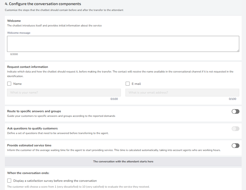 4. Configure the conversation components
