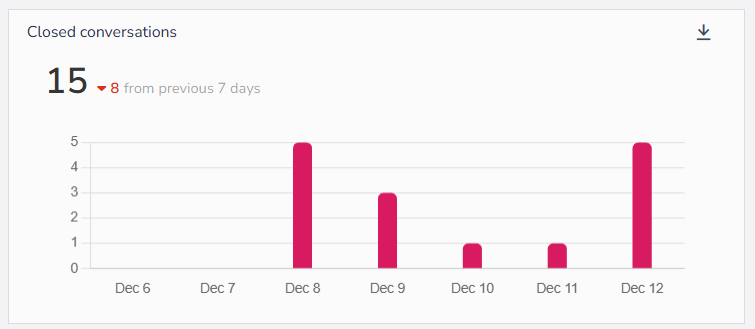 See how many conversations your team closed in the selected period. Conversations end when contacts are closed, archived, or transferred.