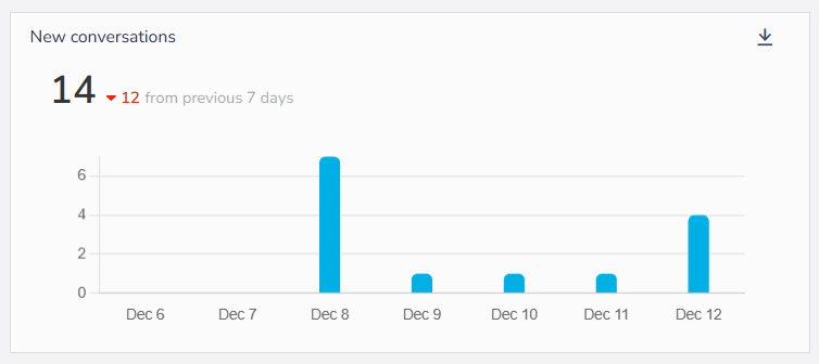 See how many conversations your team closed in the selected period. Conversations end when contacts are closed, archived, or transferred.