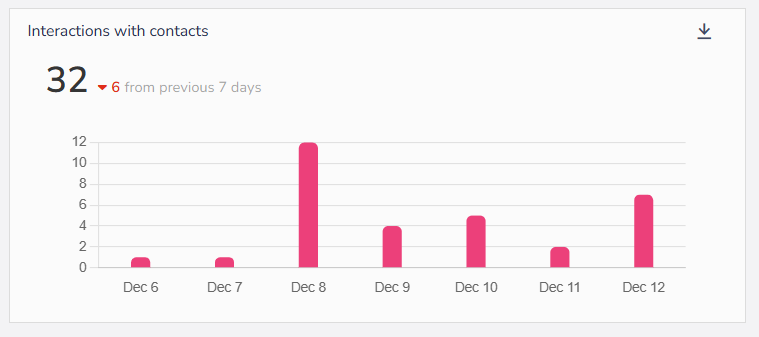 In this metric, you see the quantity of contacts your team interacted with per day during the selected period.