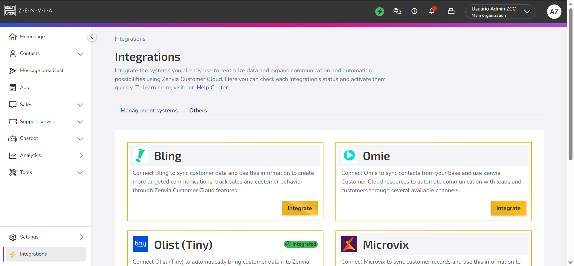 Below, learn the step-by-step process to integrate the OMIE Enterprise Management System with Zenvia Customer Cloud.