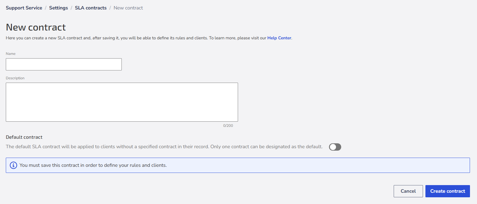 Create a new contract when there are different deadlines for different clients. For example, if your company handles inquiries with an eight-hour deadline and issues with a four-hour deadline, create a single contract with two rules. If some clients have different deadlines, create a new contract with other rules.