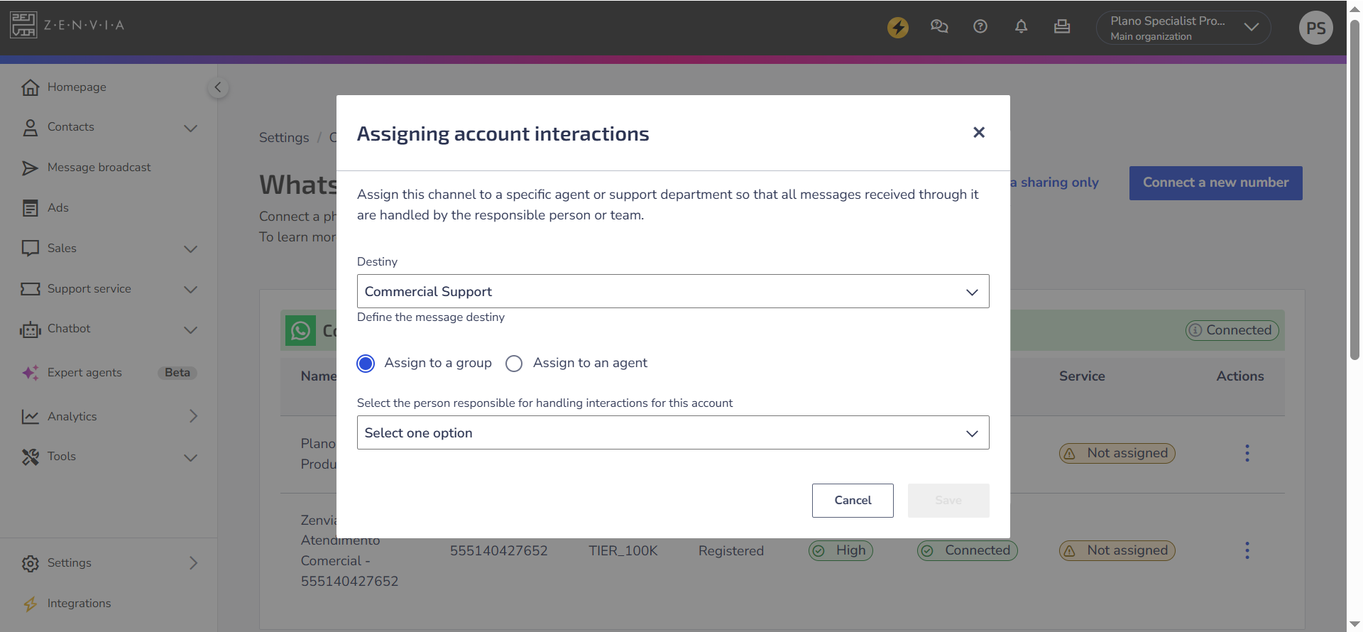 You can assign a channel to an agent or a group to ensure that all incoming messages are directed correctly to the responsible person.
