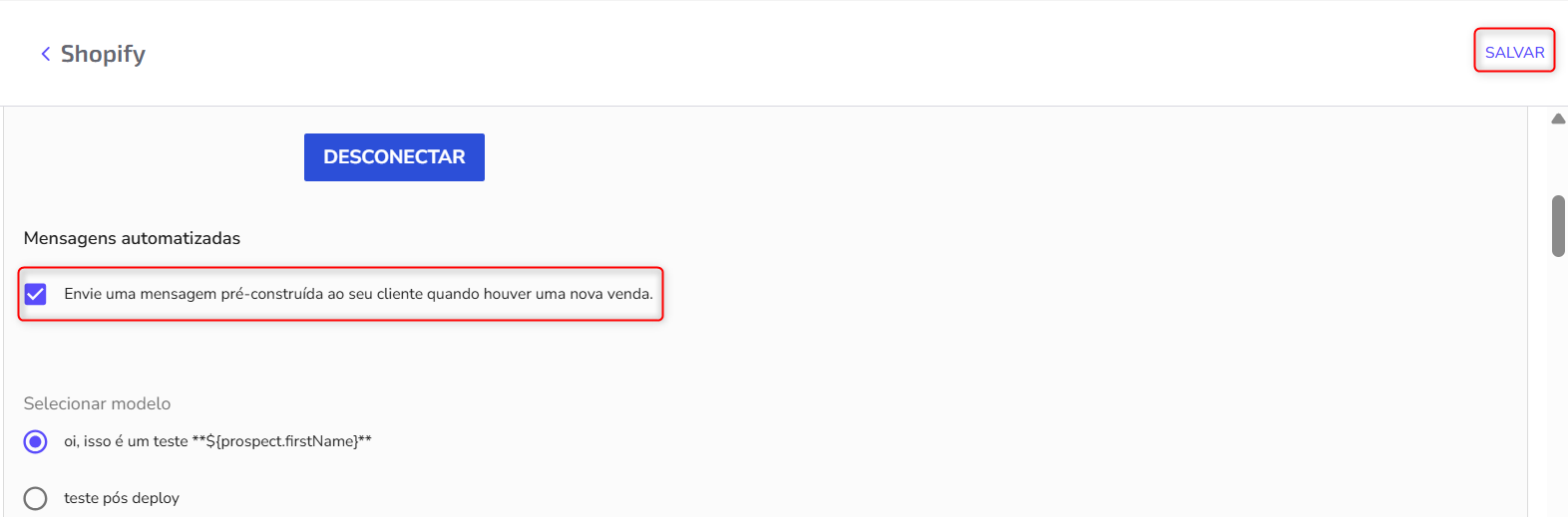 The next step is to connect your store to Zenvia Customer Cloud: