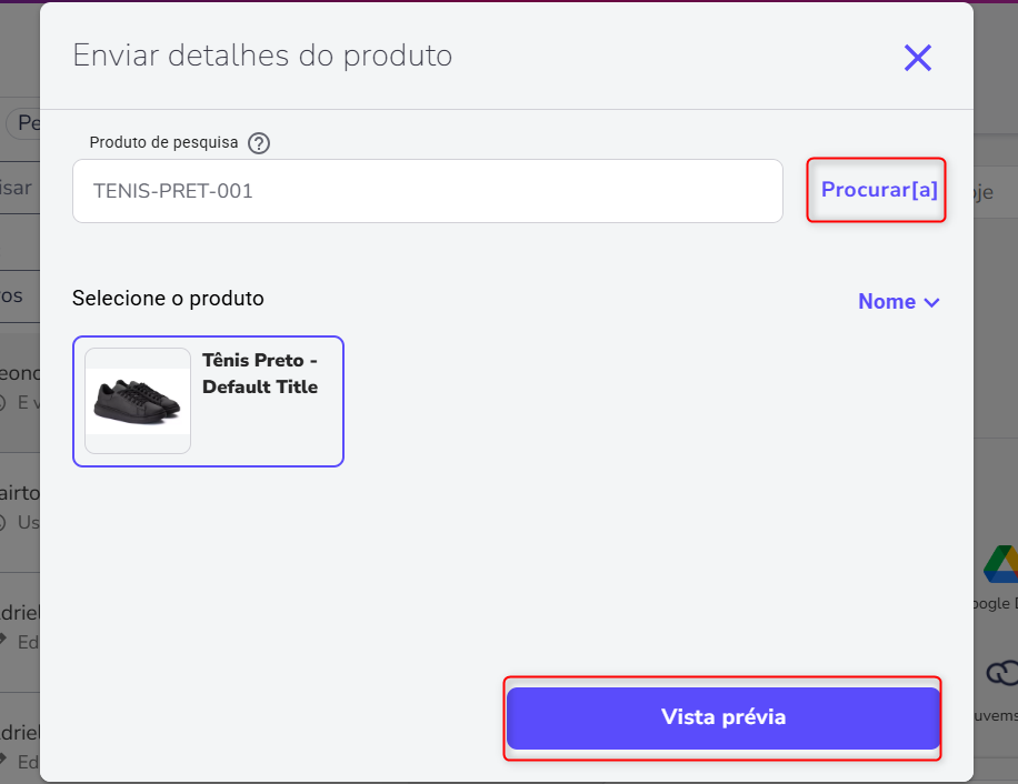 2. Sending product details: Quickly share the name, details, price, and link of a product from your store directly in the service conversation, using the SKU code.