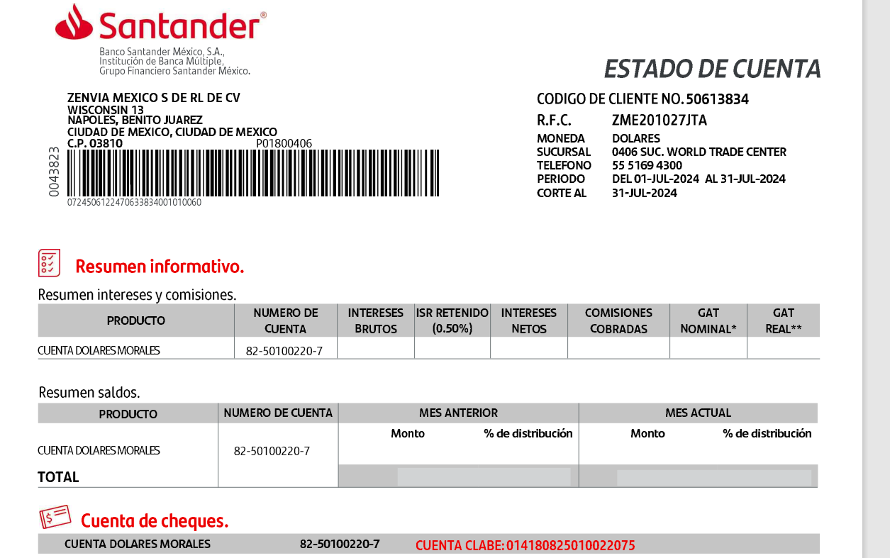 ⚠️ Attention: Payments will be made to the bank account of Zenvia Mexico (RFC ZME201027JTA), which is now responsible for issuing payment complements.