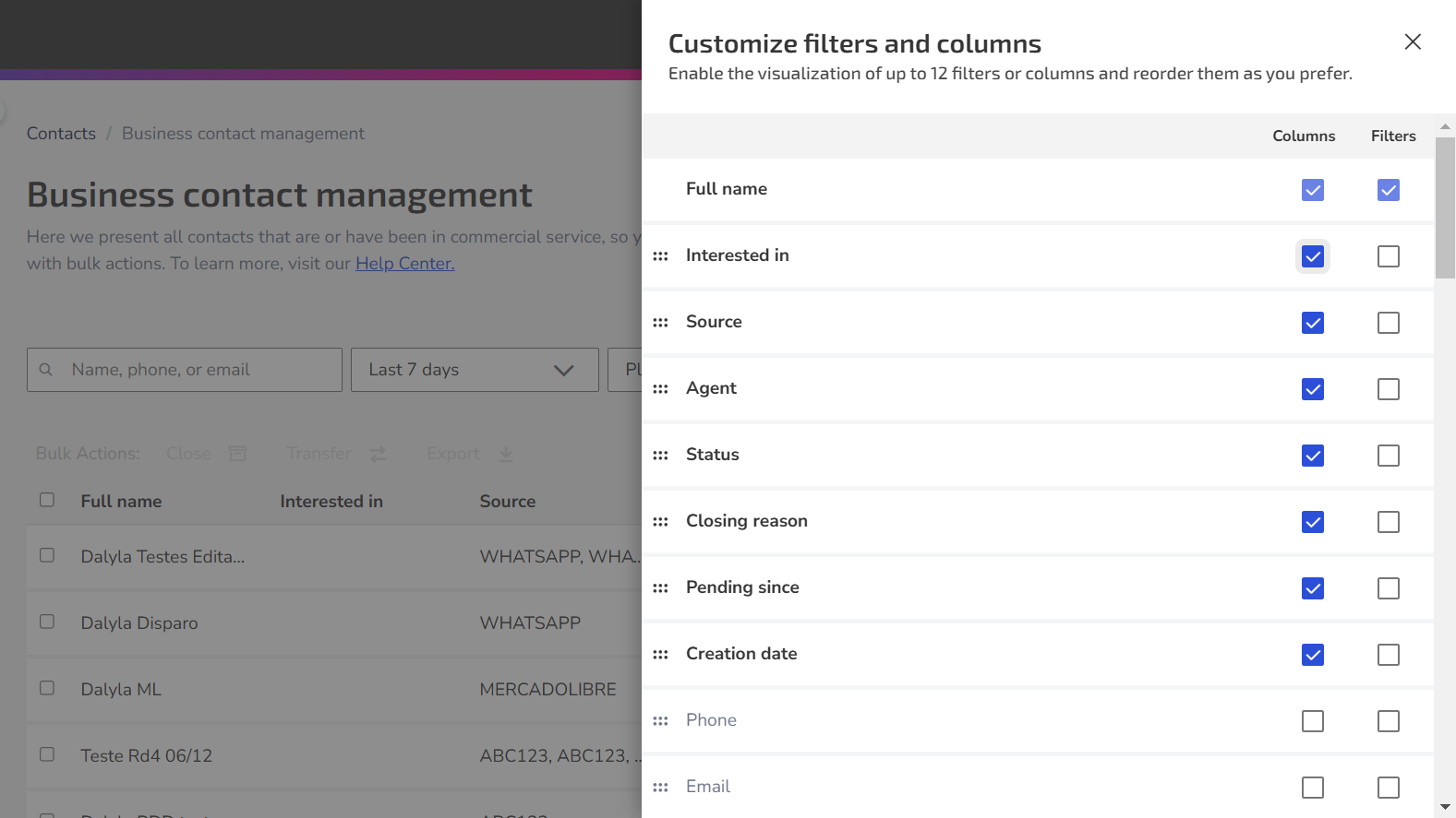 Perform bulk actions: Close, transfer and export contacts