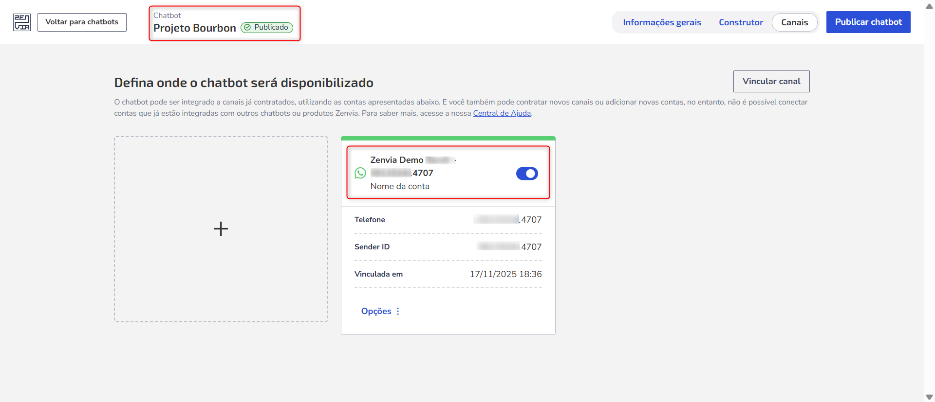 To assign or change the linked channel, access **Chatbot > Chatbot List > select the chatbot > Builder > Channels**. Learn more in: Link a channel to the chatbot.