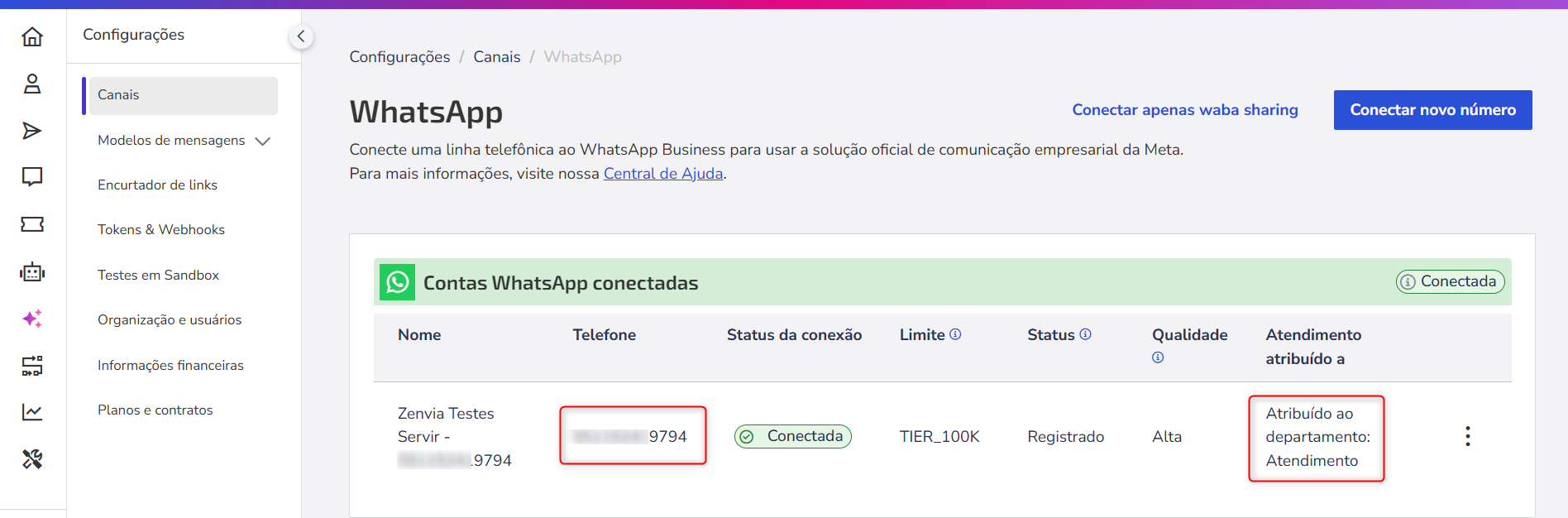 The system automatically defines the destination based on the channel configuration. To do this, simply ensure that the WhatsApp channel is configured with **Service Destination = Support Service** and is linked **to a department** of the Support Service.