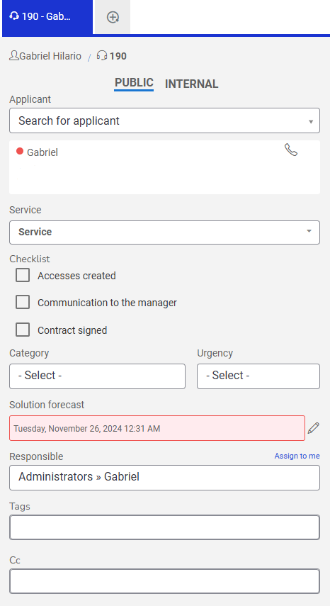 To ensure the request is properly directed, select the Assignee and add Tags to facilitate future searches. If you want others to follow the progress, include their email addresses in the Cc field.