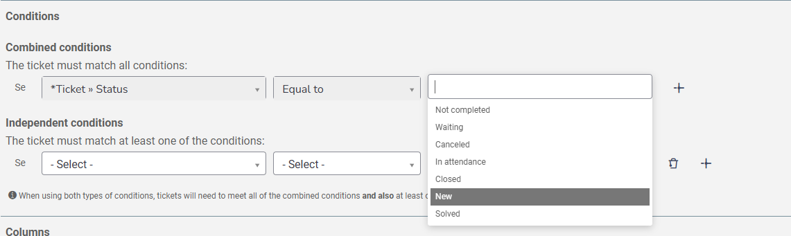 Set the conditions that the tickets must meet in order to appear in the list. The conditions can be: