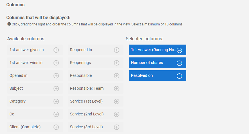 Organize the order: After adding the desired columns, you can reorder them in the Selected Columns section by dragging them to your preferred position.