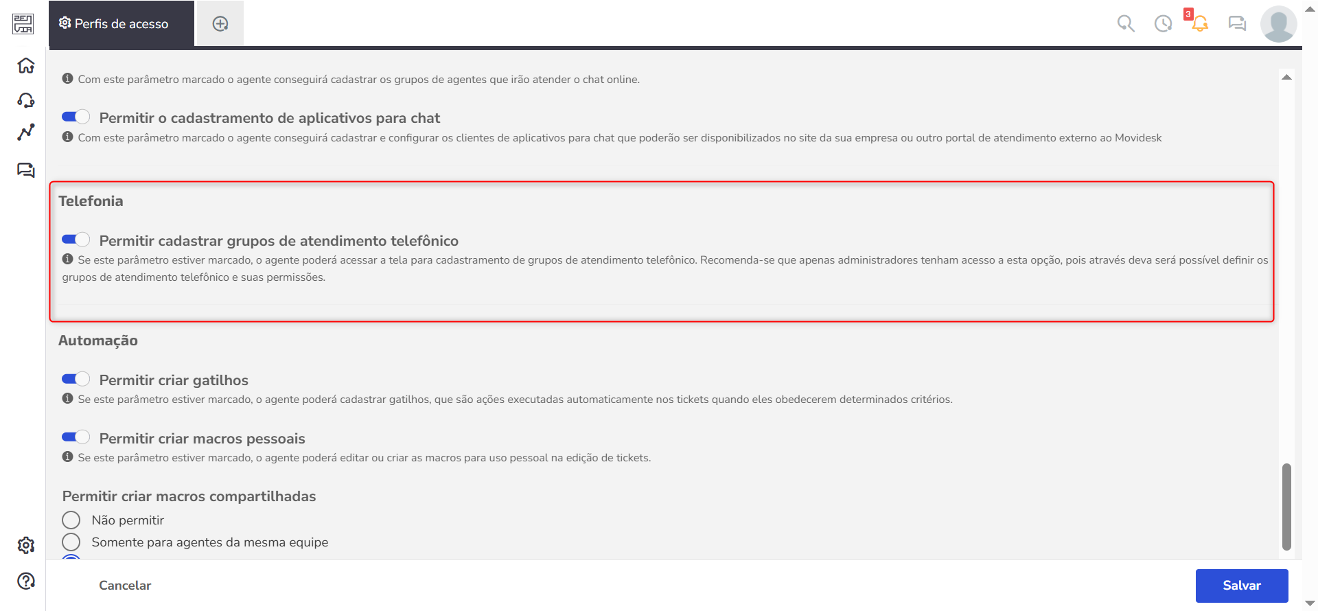 ⚠️ Attention: Each agent must have an extension registered in their profile (People Registration). Without this, the telephony integration will not work correctly.