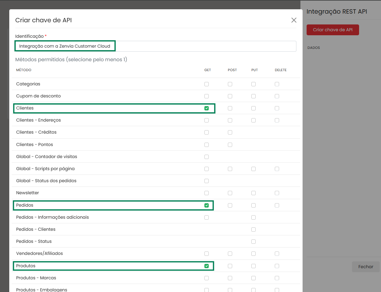 ⚠️ Attention: Even if you already have other API keys, we recommend creating a new key exclusively for the integration with Zenvia Customer Cloud. Changing or removing permissions from an existing key may affect the integration.