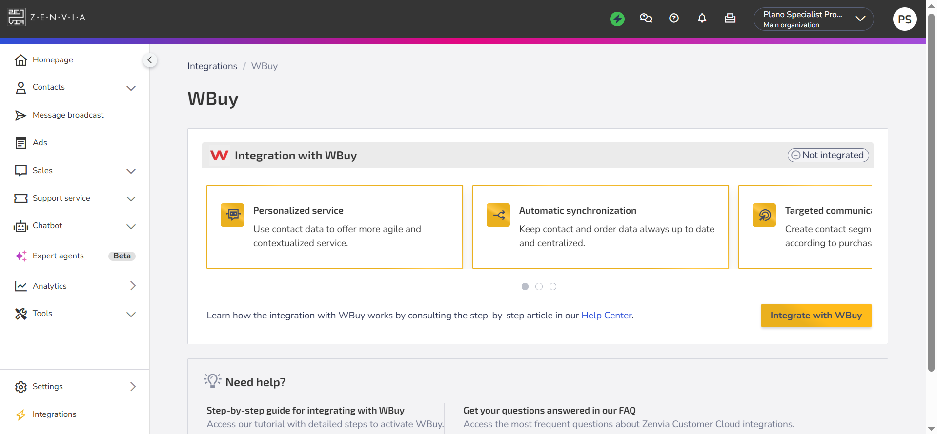 In this article, learn how to configure the integration between WBuy and Zenvia Customer Cloud.