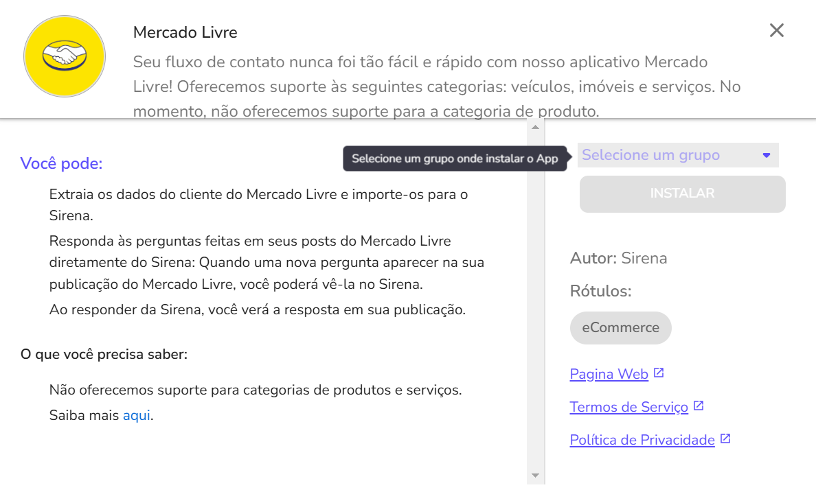 ⚠️ Attention: This is a limitation of Mercado Libre, not Zenvia Customer Cloud.