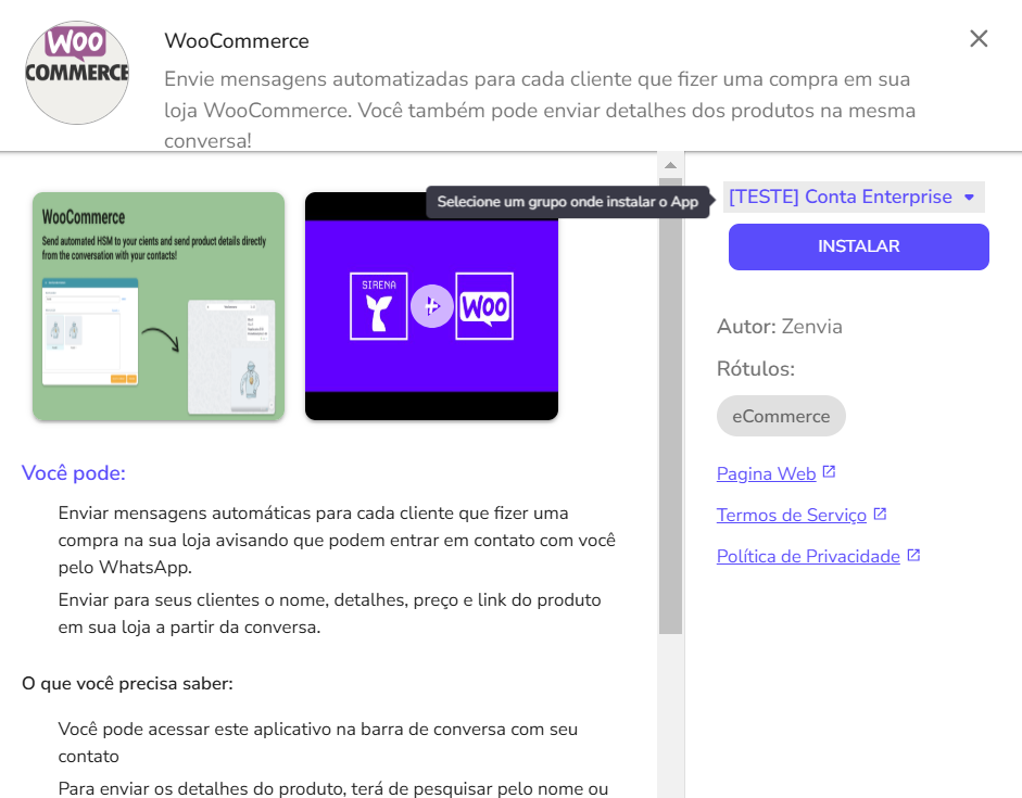 Integrate WooCommerce with the Commercial Service to automate messages and make it easier to send product information directly in conversations with customers.