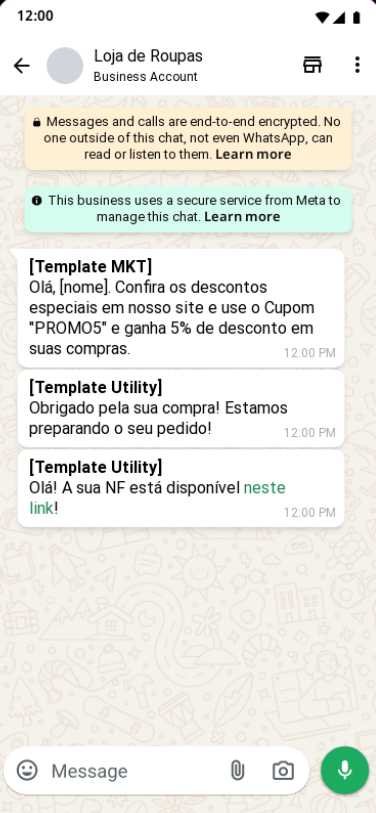 They follow the same logic as templates. Each template sent consumes part of the contracted channel package. Depending on the flow, they may be charged when used to initiate a conversation, according to your contract terms.