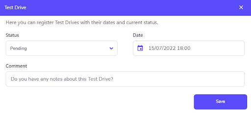 Register and track visits and test drives in commercial service