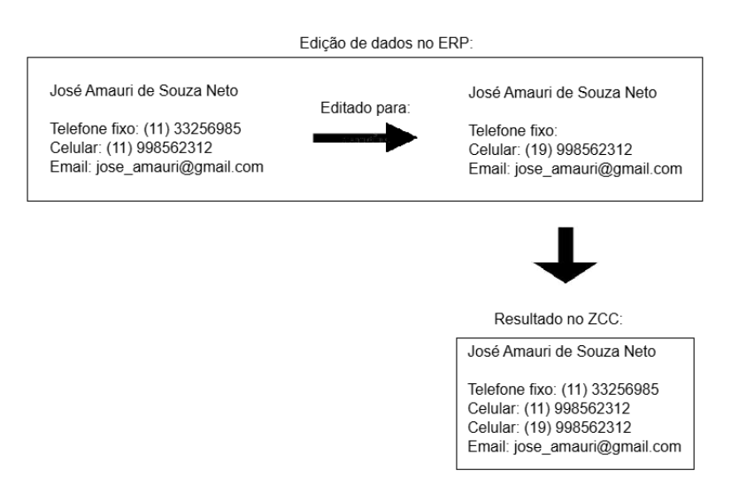 1. You update a contact in the management system with a mobile, landline, or email that already exists in Zenvia Customer Cloud. During synchronization, the contact's old data in Zenvia Customer Cloud is completely replaced with the new information from the management system.