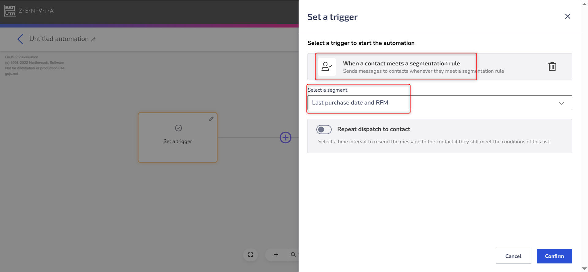 Set conditions using RFV and sentiment analysis. When these conditions are met, the agent triggers the configured action.