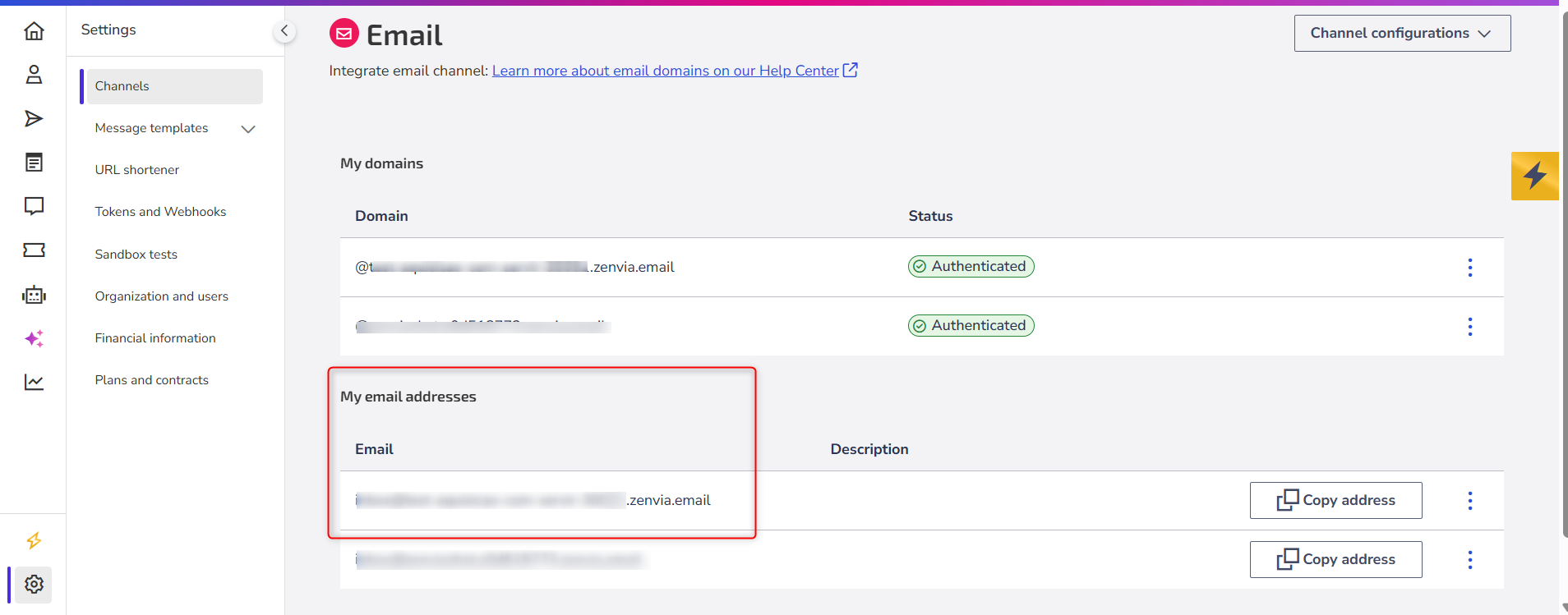 The domain used in the sending must be the same domain linked to the email channel configured for support service. This ensures that when the client responds to the email, the system automatically redirects to support.