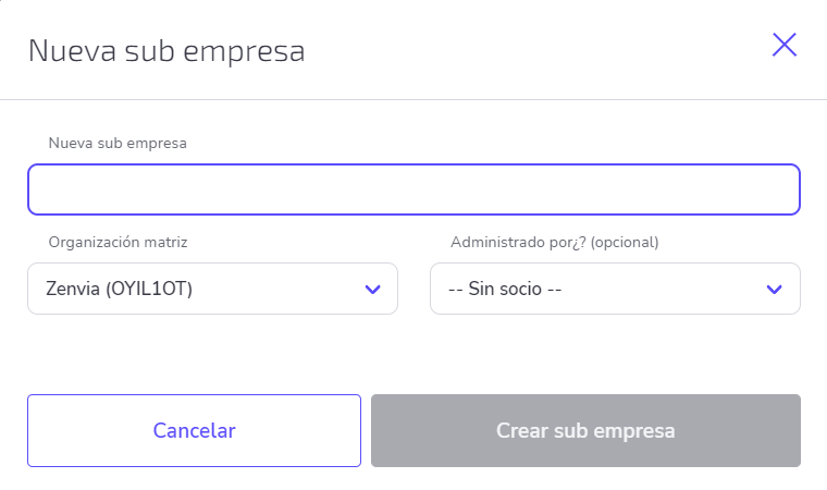 4. Después de rellenar cada uno de los campos, haz clic en Crear sub empresa.