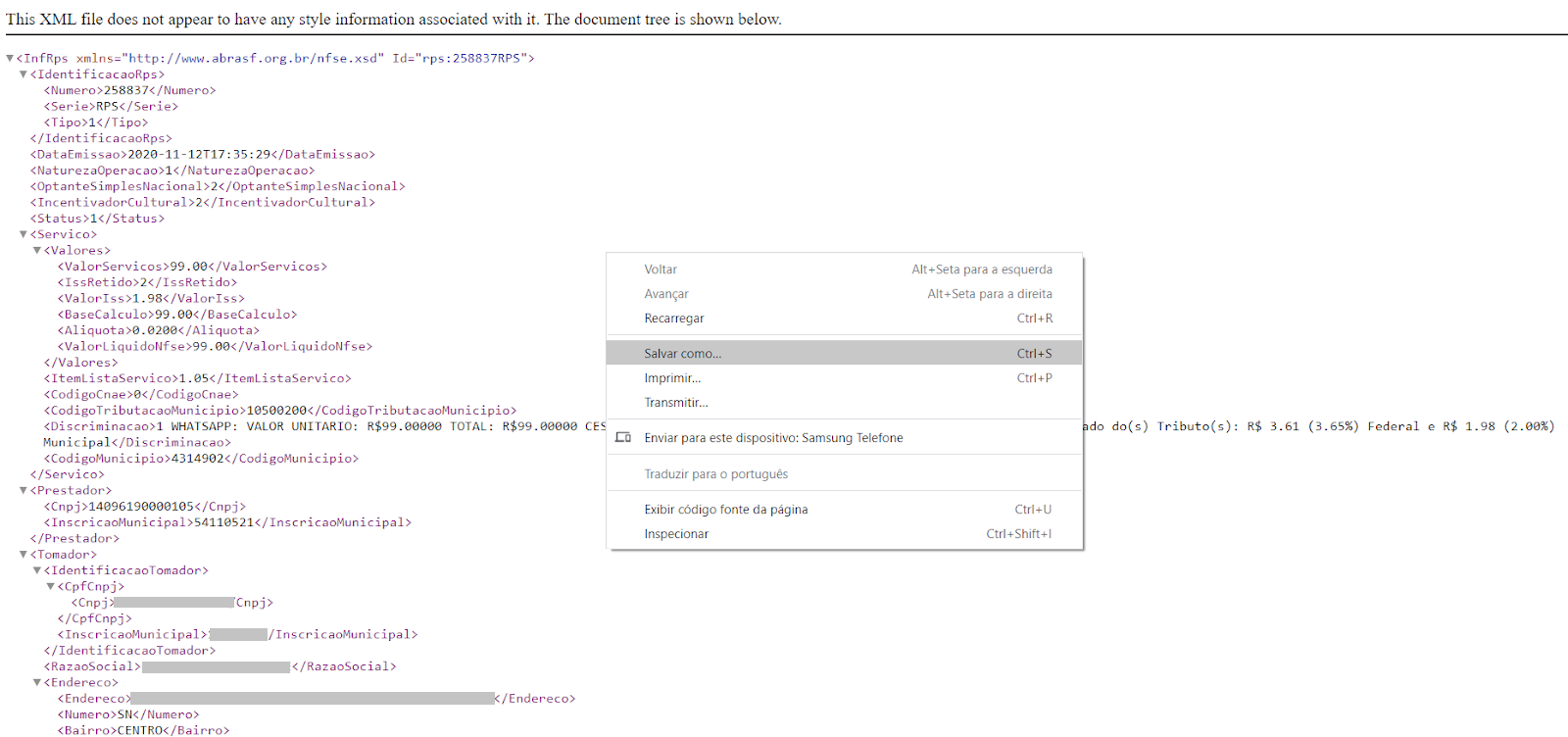 Al hacer clic en la opción, el XML se abrirá en una nueva pestaña del navegador. Para guardarlo, haz clic con el botón derecho en Guardar Como.