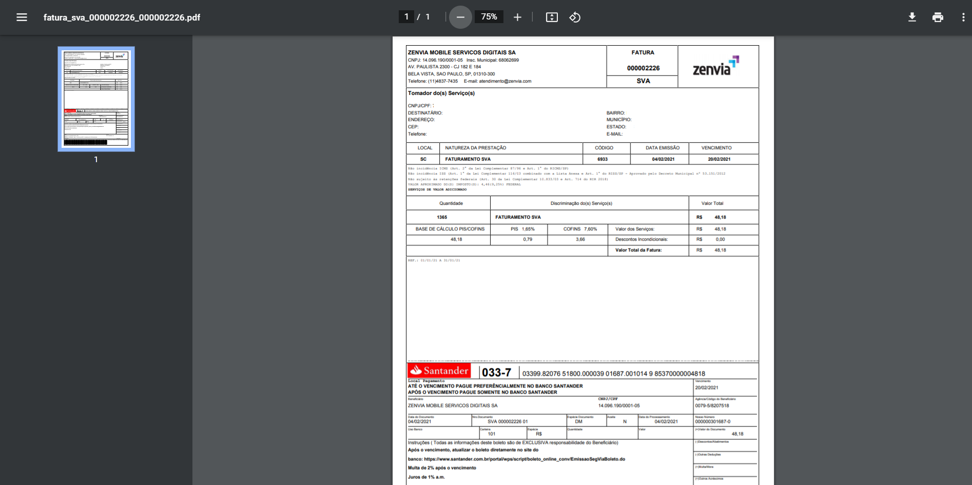 La factura SVA (Value Added Service) hace referencia a una nueva forma de cobro realizada por Zenvia a partir de febrero de 2021 y está relacionada con los servicios de SMS.