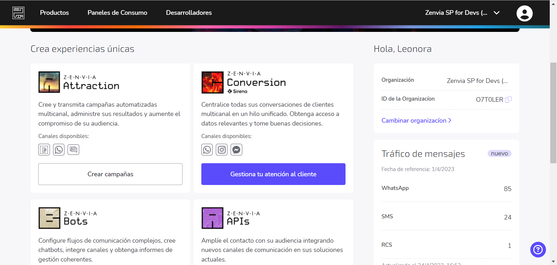 • Haz clic en el menú Productos y selecciona la opción Zenvia Attraction;