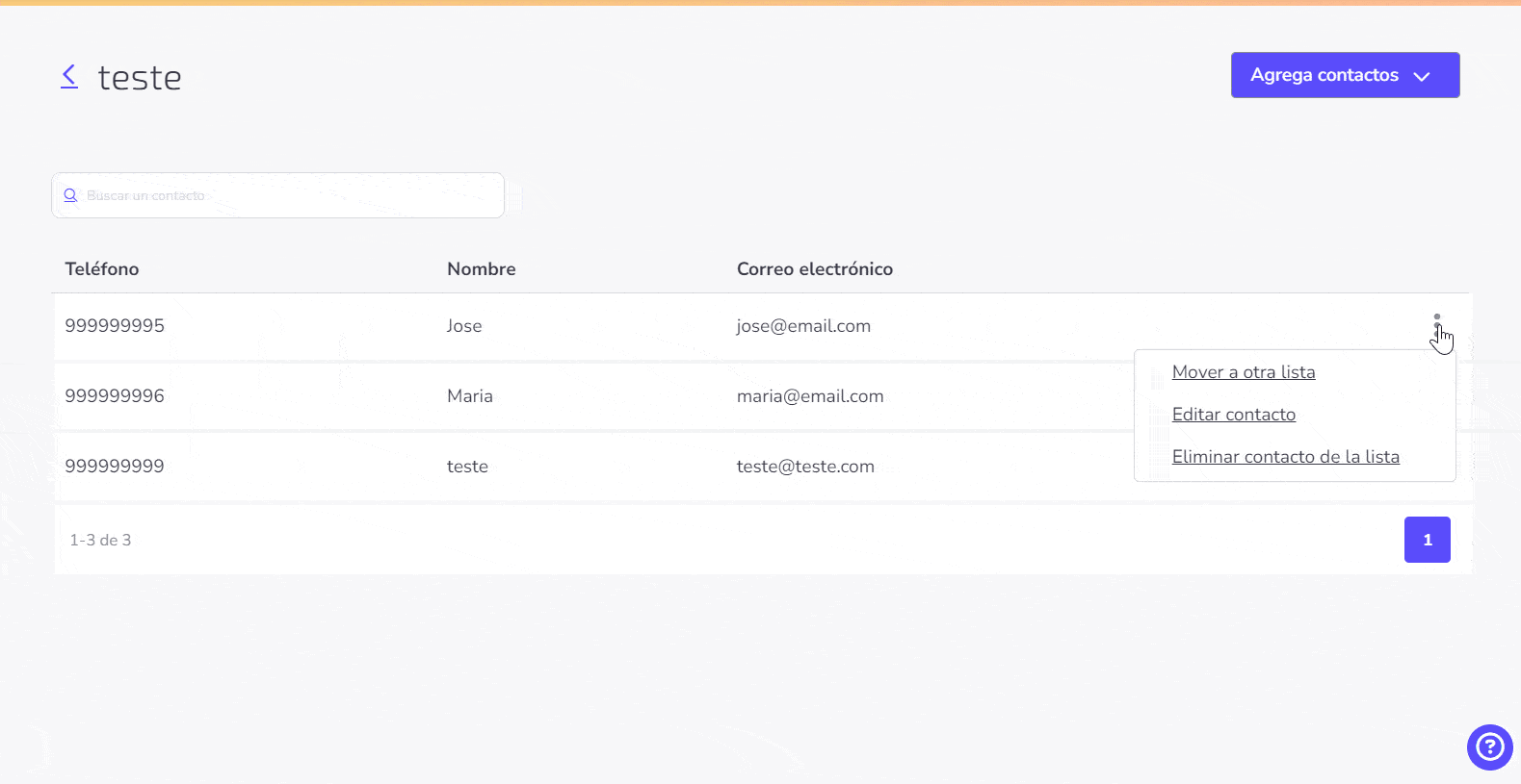 ⚠️ Atención: Eliminar el contacto de una o varias listas no significa una eliminación permanente. Esto significa que aún puedes encontrarlo en tu base de datos y también utilizarlo en otras listas.