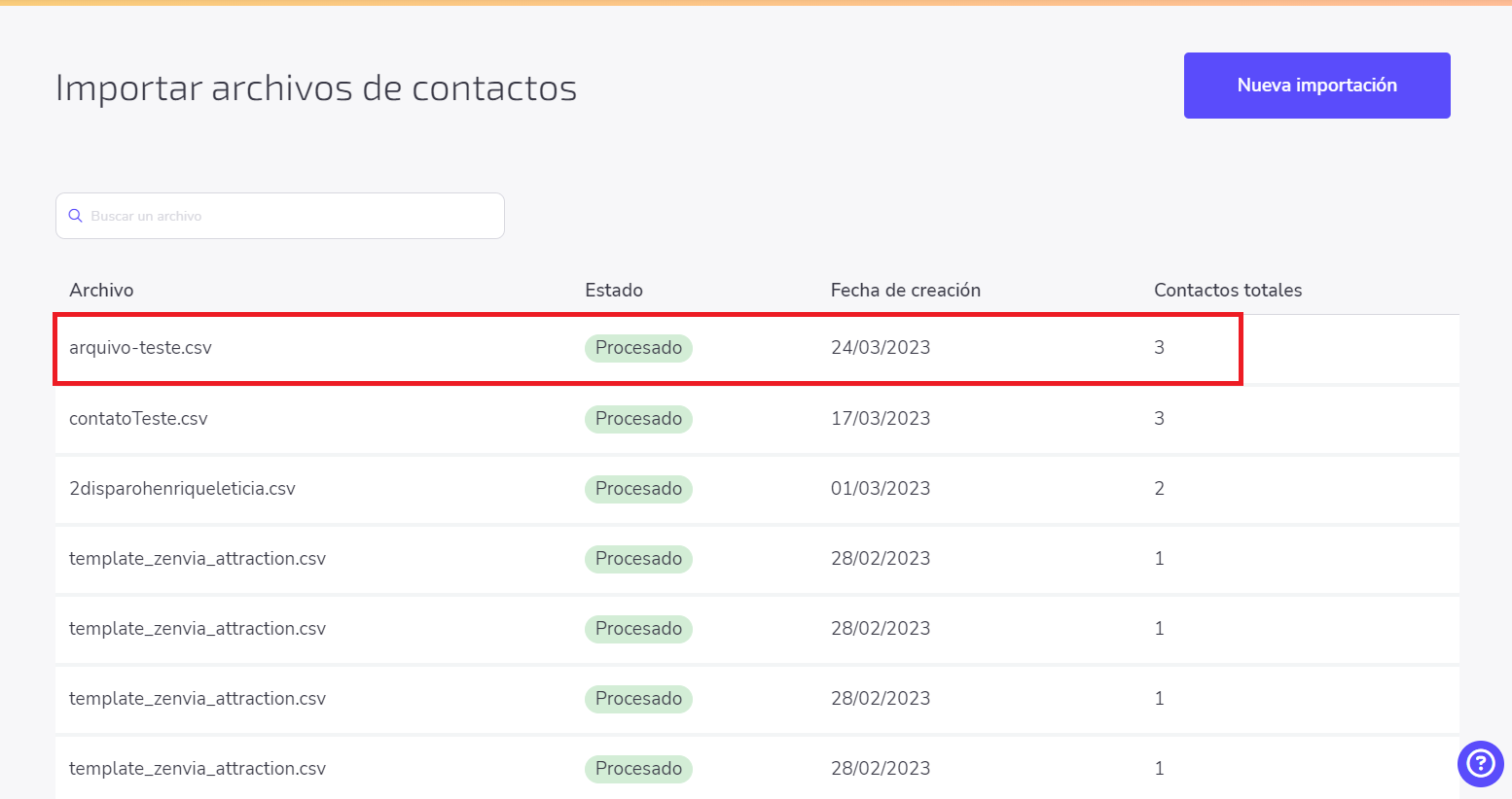 💡 Sugerencia: Nota que el comportamiento estándar de la importación es sobrescribir. Por ejemplo: En el caso de que sea encontrado un número de teléfono igual en la lista seleccionada, el sistema sobrescribirá los otros datos utilizando el archivo como base.