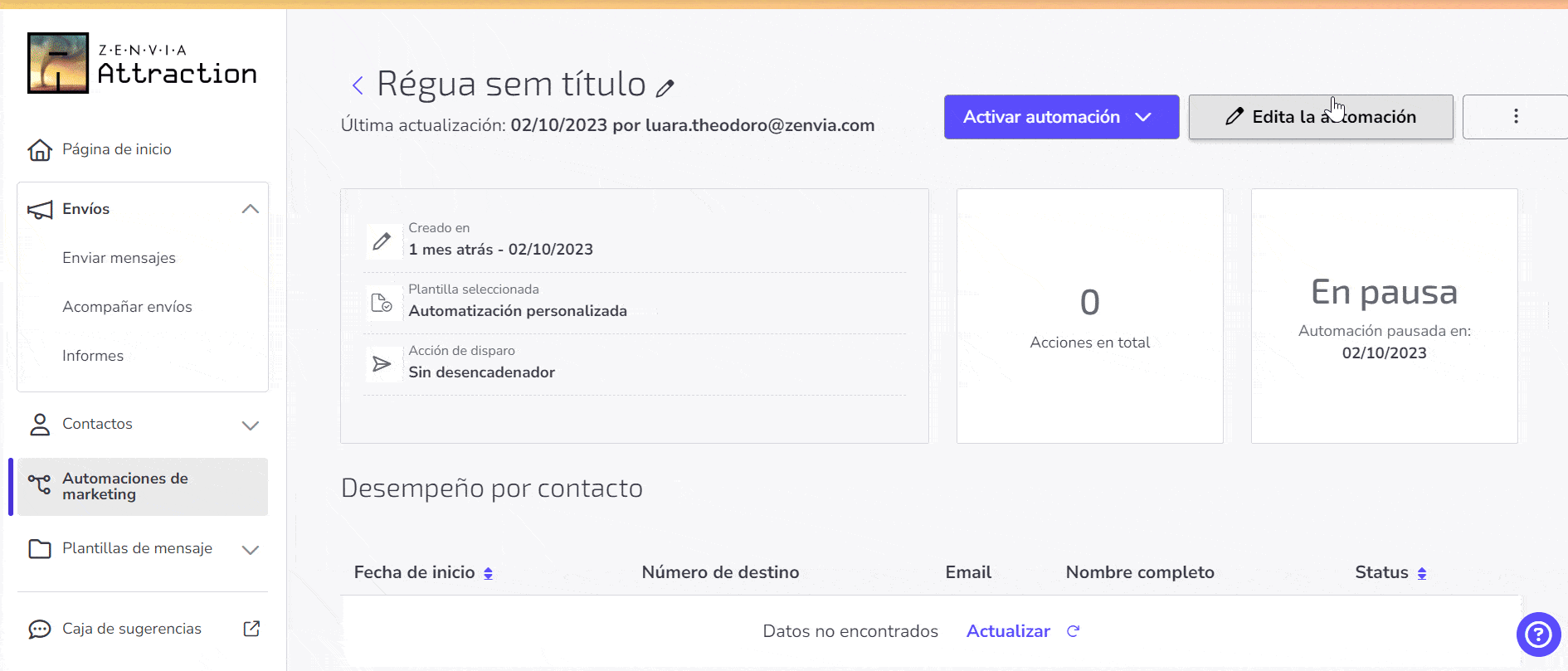 Administrar una automación en Zenvia Attraction