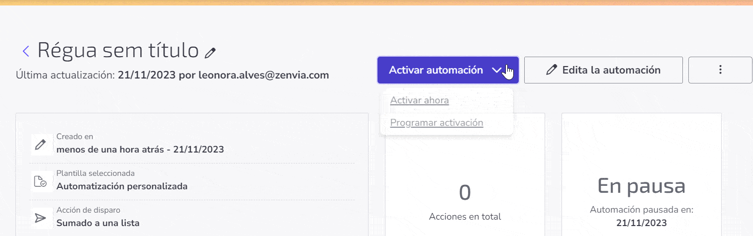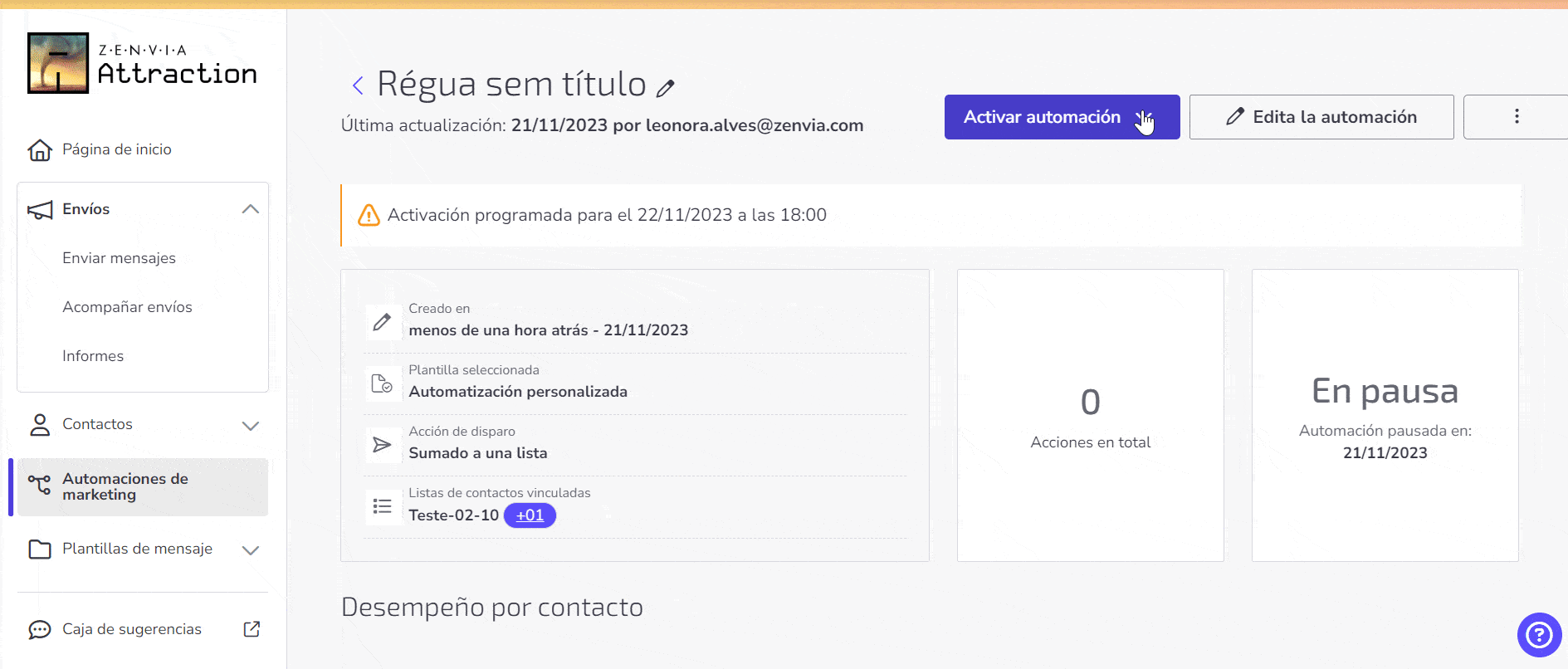 Administrar una automación en Zenvia Attraction