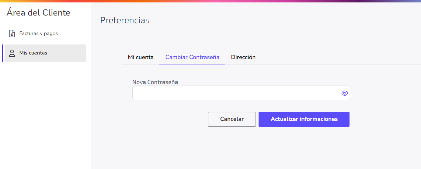 4. Escribe la nueva contraseña y haz clic en Actualizar informaciones.