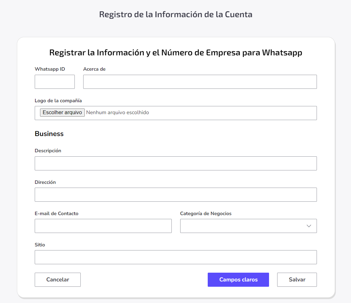 - Categoría de Negocio: Las opciones predefinidas por WhatsApp son las siguientes:
