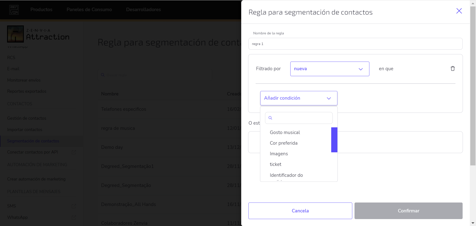 Crear reglas para segmentación de contactos en Zenvia Attraction