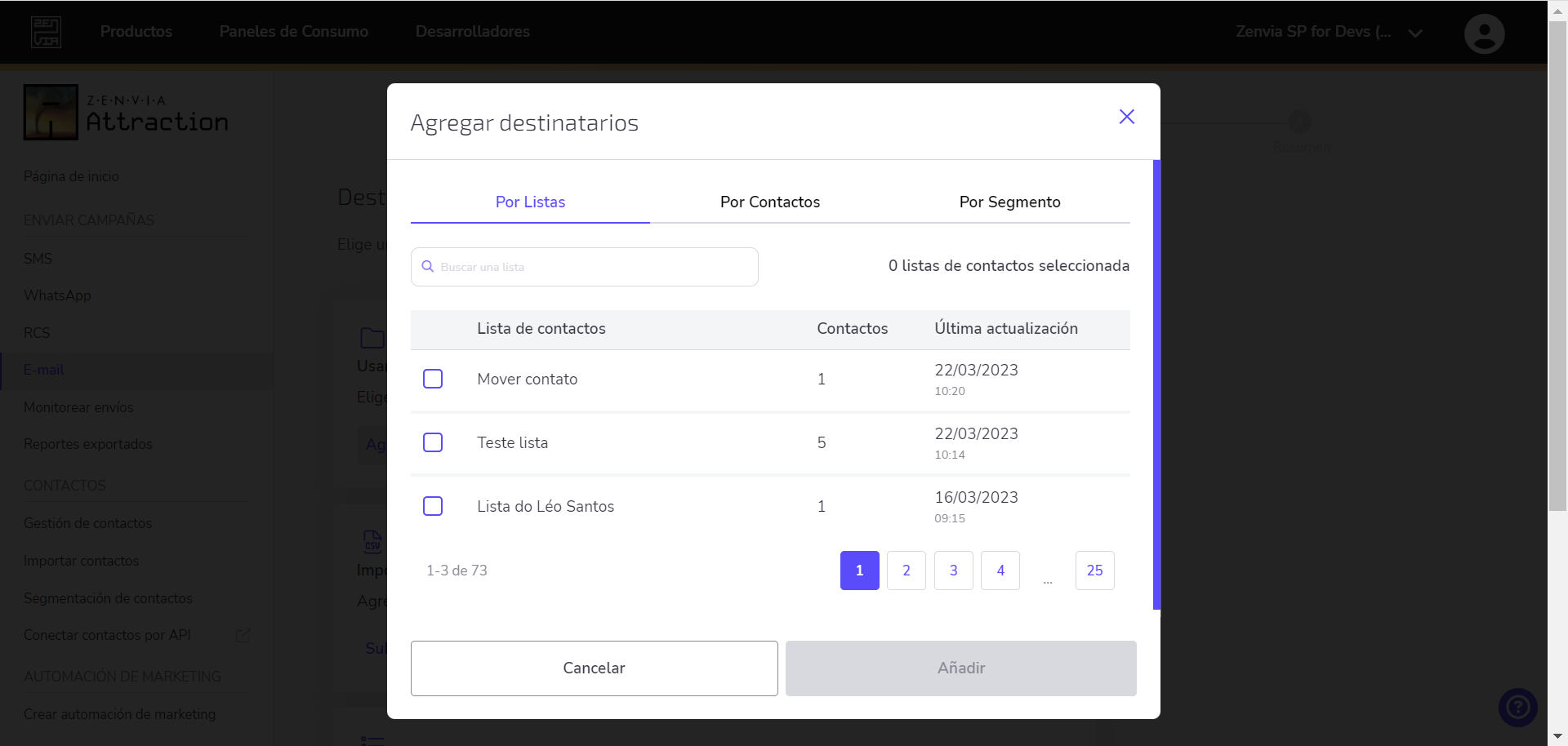 E-mail: Enviar mensajes por Zenvia Attraction
