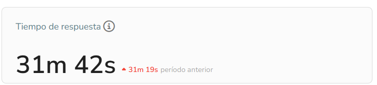 Esta es la mediana del tiempo que el equipo en general tarda en responder a un contacto cuya conversación ya está abierta, calculando no solo la primera respuesta, sino cada vez que haya un contacto con el mismo usuario.