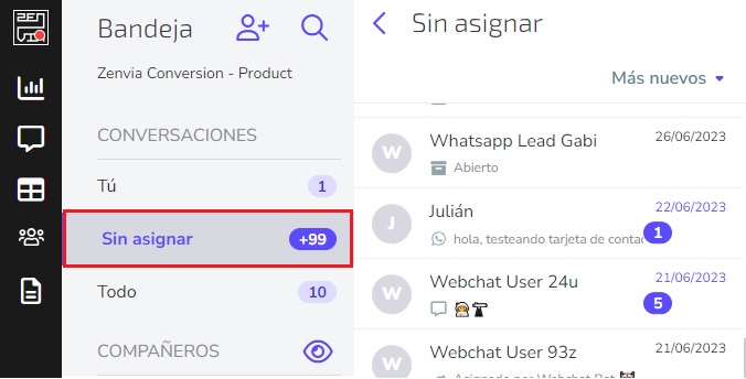 Para que el proceso de la transferencia sea terminado, es importante que el asesor revise su bandeja de Sin Asignar y acepte al contacto. Para mayor facilidad a la hora de visualizar varios contactos en la pestaña de Sin Asignar, recomendamos activar la funcionalidad de la Lista de Sin Asignar.