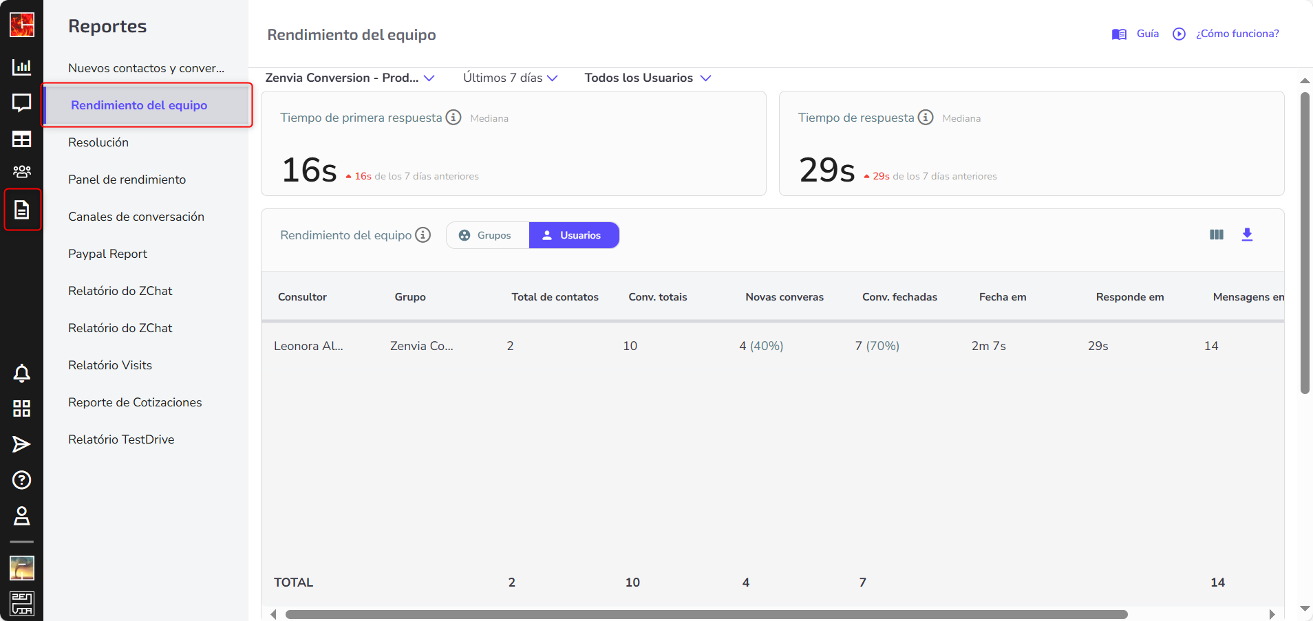 CSAT del grupo de consultores: Suma de las respuestas en las conversaciones en las que participaron los consultores del grupo.